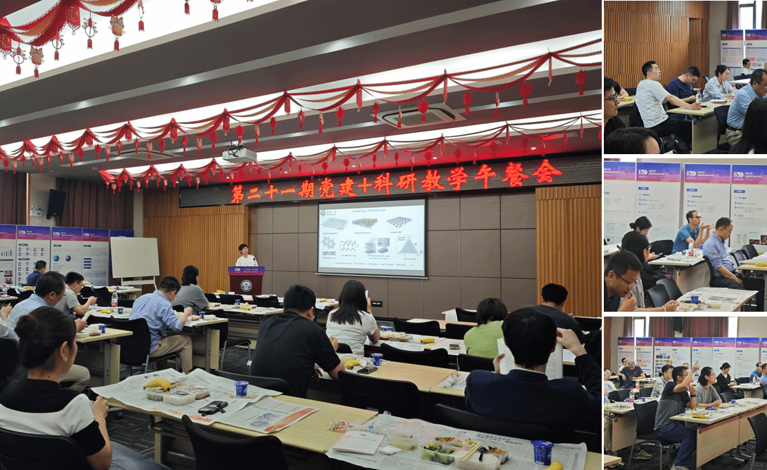 5月31日,由新葡萄88805官网教师第一党支部牵头开展的第二十一期“党建+科研教学午餐会”系列活动在新楼五楼多功能厅成功举办。本次午餐会邀请了学院于艺羚特聘研究员为主讲人,以题为“二维半导体激子多体作用对光学性质的影响”,系统讨论了二维TMD激子相变的物理路径,以及在不同激子物相中展现的有趣的发光特性和激子传输性质。在互动环节,张顺平教授、肖孟教授、王倜研究员等参会老师就报告内容展开了热烈的讨论。